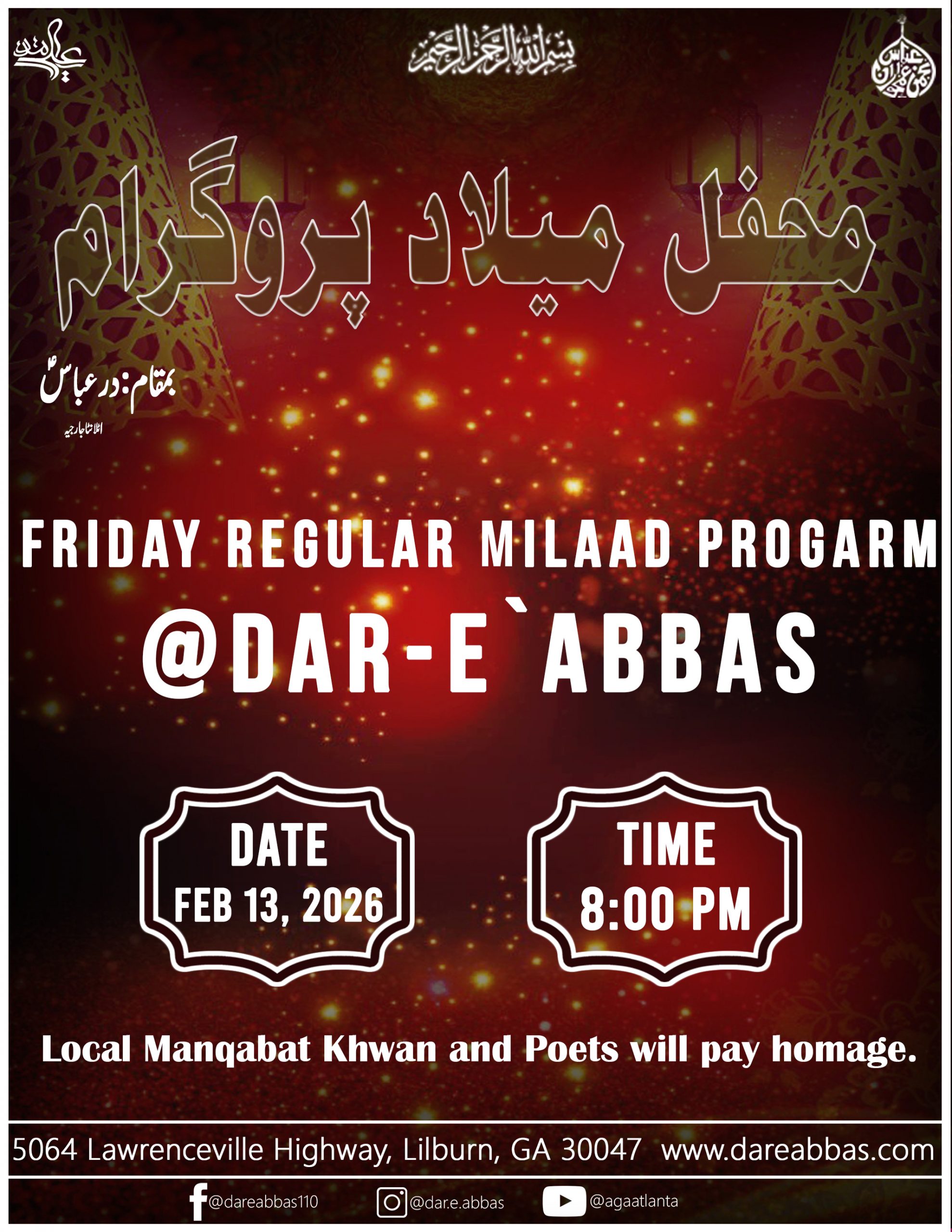 | February 13, 2026 Majlis Time: 8:00 PM |