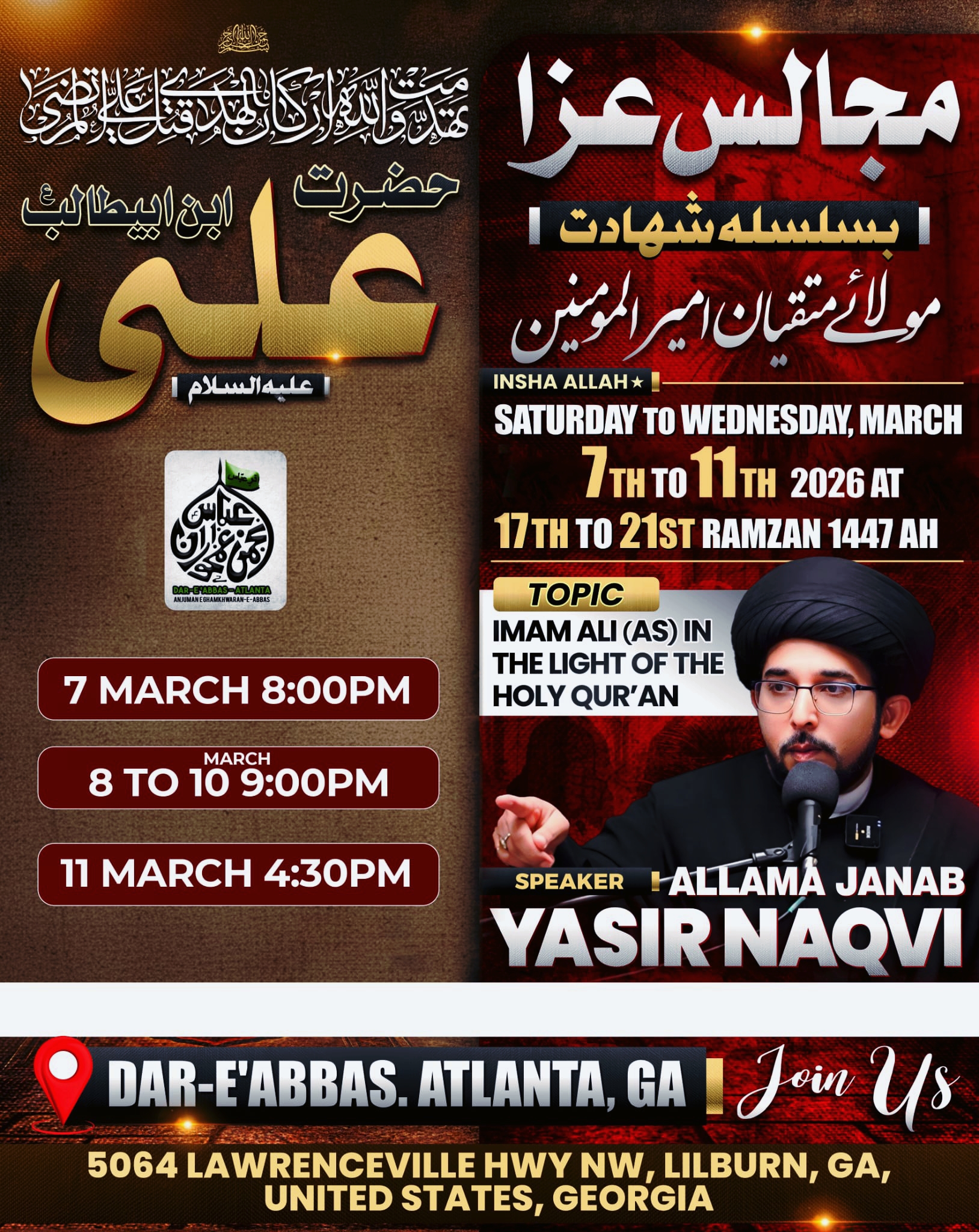 | March 07, 2026 Majlis Time: 8:00 PM. |